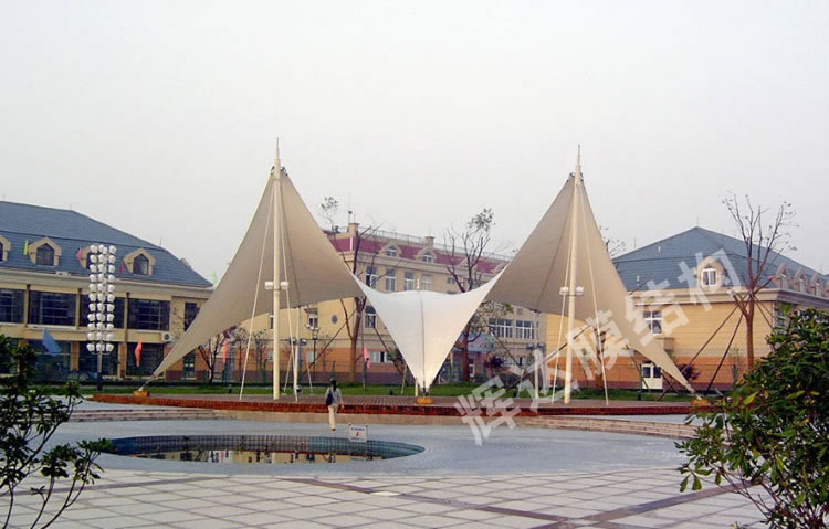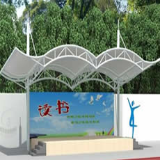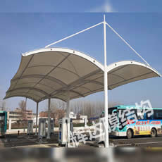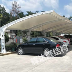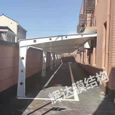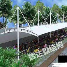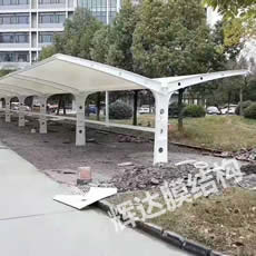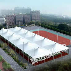大庆膜结构车棚工程位于黑龙江省,建筑面积430平方,合同工期15天。考虑到造型和实际功能需求,我司将本工程设计成凸弧梁单挑车棚,檐口高度2.7米,工程完工后,客户非常满意。 |